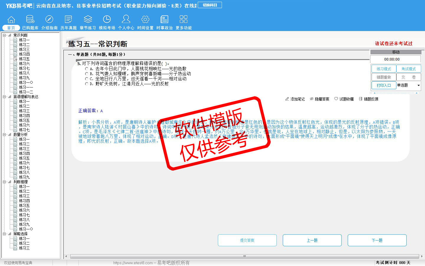 2026年云南省直及地市、县事业单位招聘考试(职业能力倾向测验·E类)在线题库-(ID:4530)