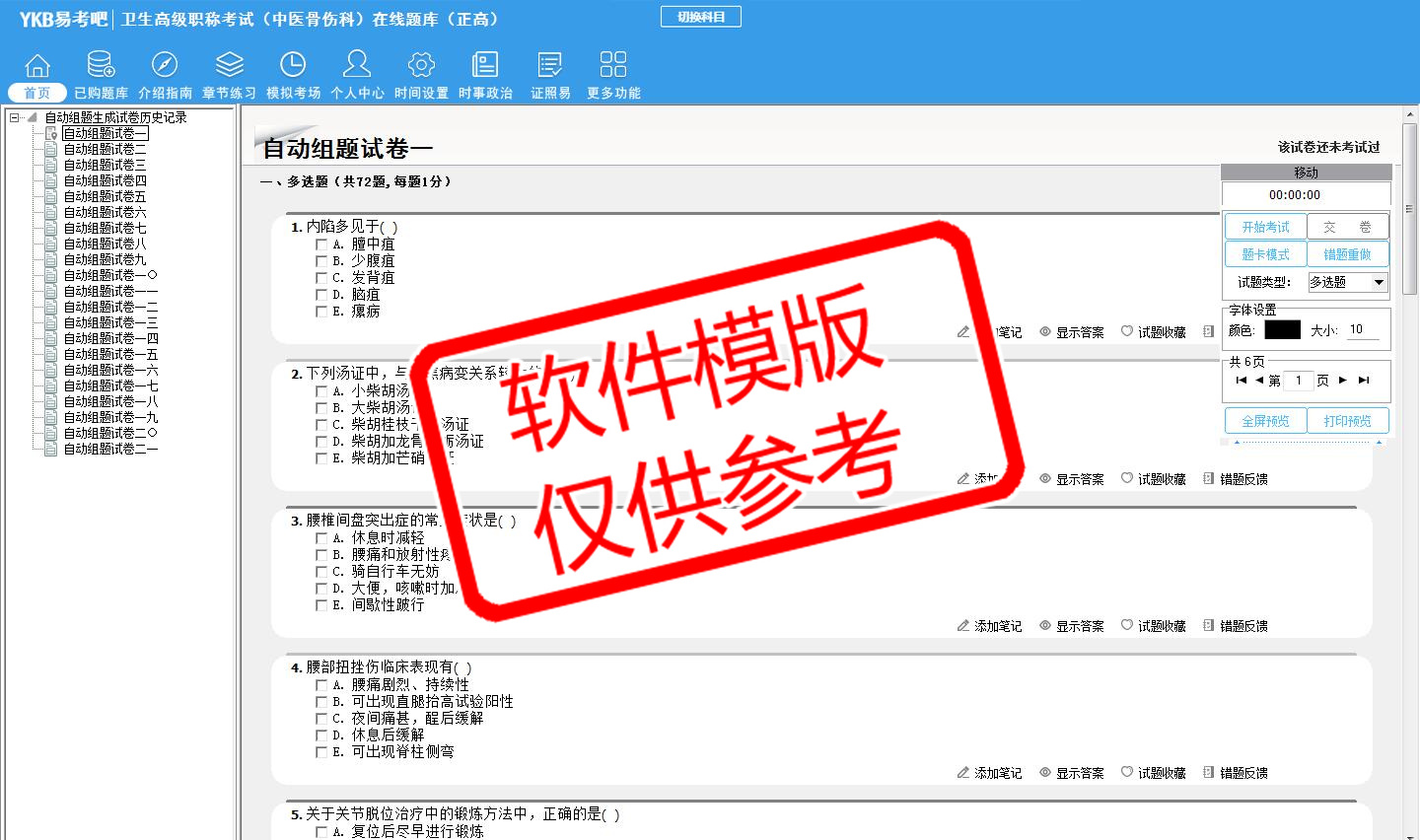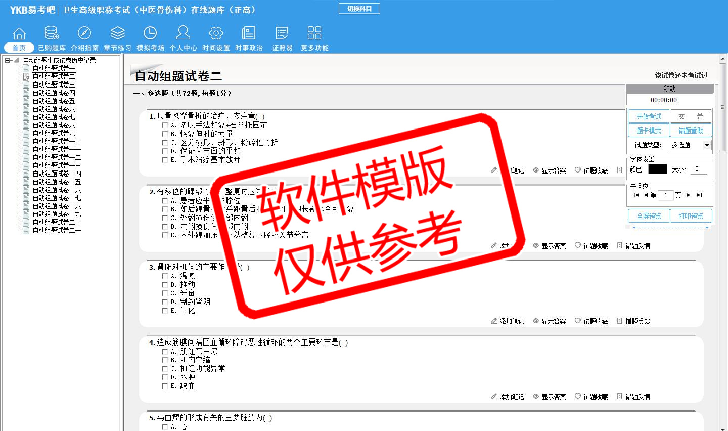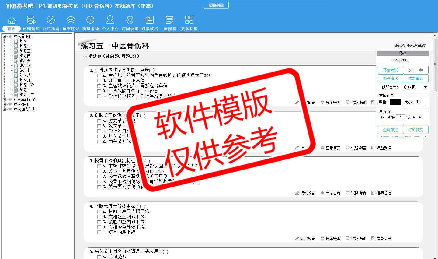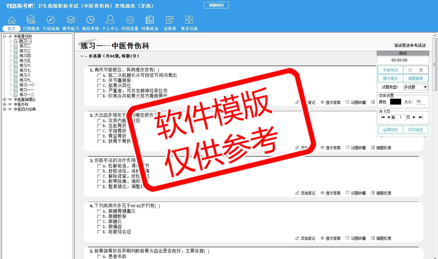2026年卫生高级职称考试(中医骨伤科·代码076)易考宝典软件(正高)(手机/网页版)是《易考宝典》考试系列软件之一,是专门为参加“高级职称职业资格考试”的朋友量身定做的自我测试系统,是个人、培训学校进行考试前训练、备考冲刺的提分技巧考试平台,题型丰富,图文并茂,内容全面,题库设计符合考试新大纲,海量试题。软件包括了富有价值的模拟考场,有计时打分等功能,就像亲身体会考试一样。