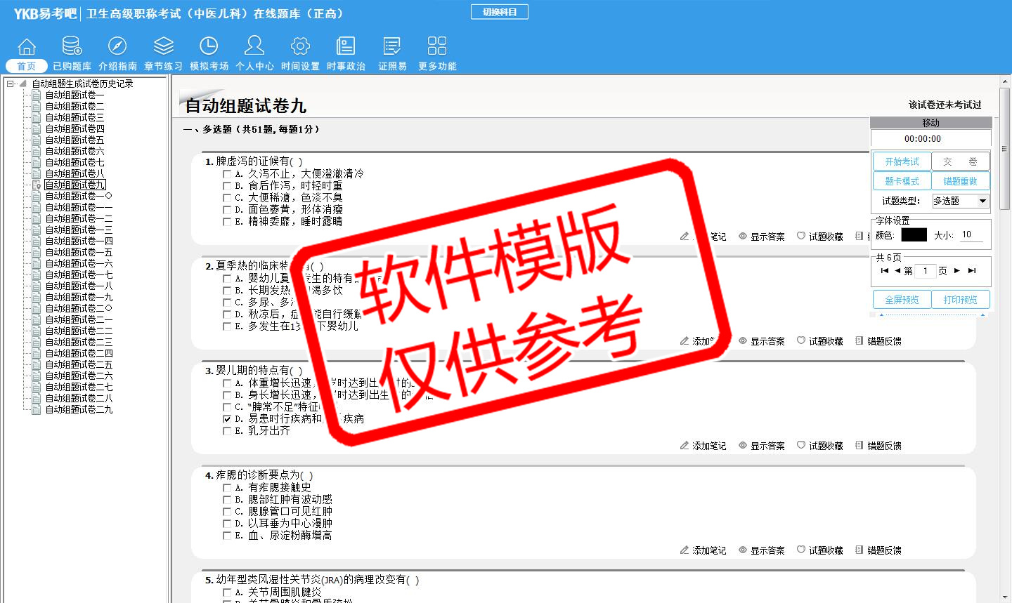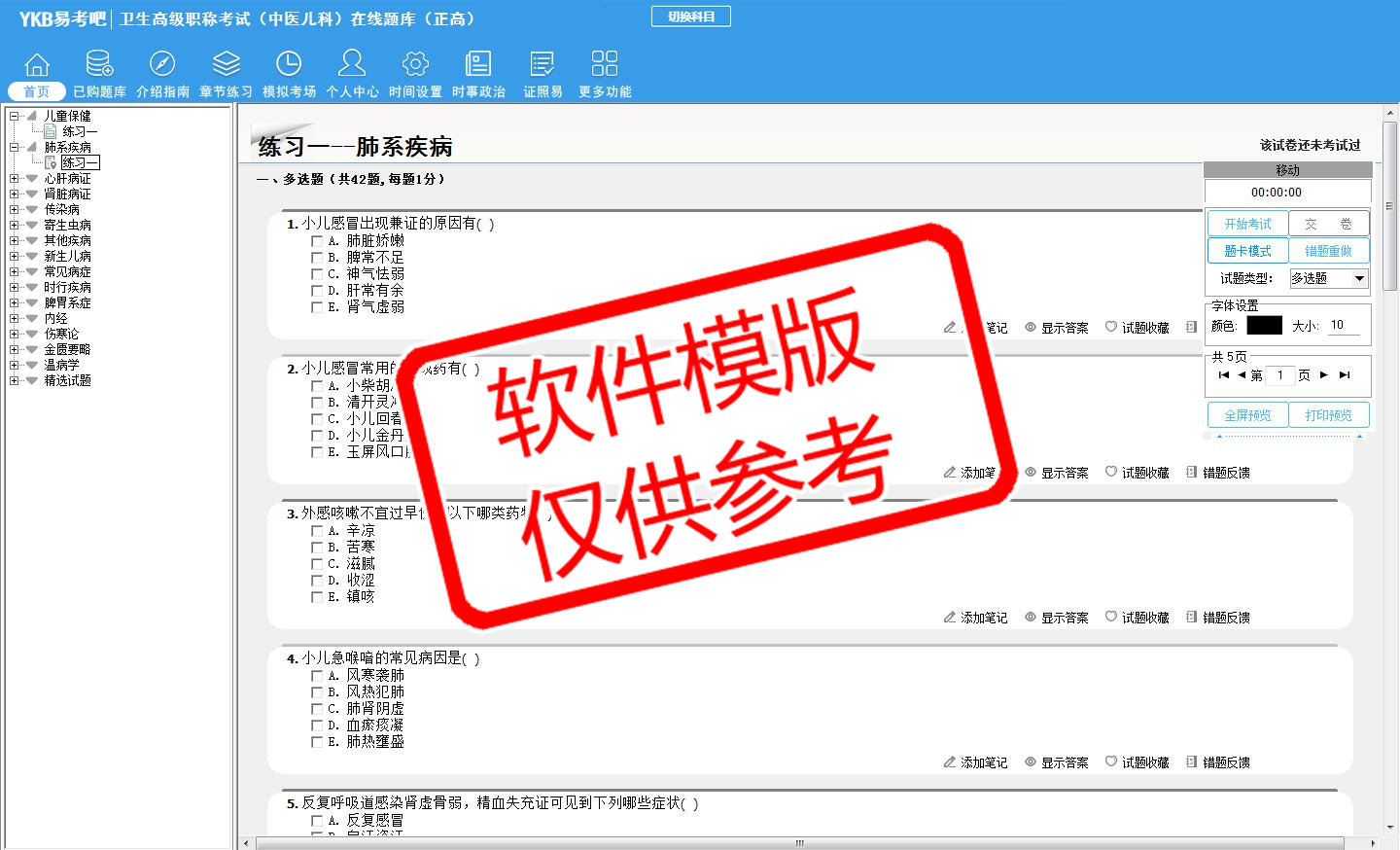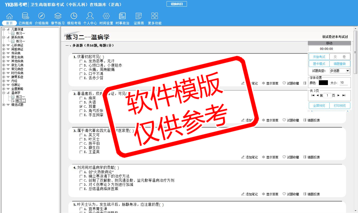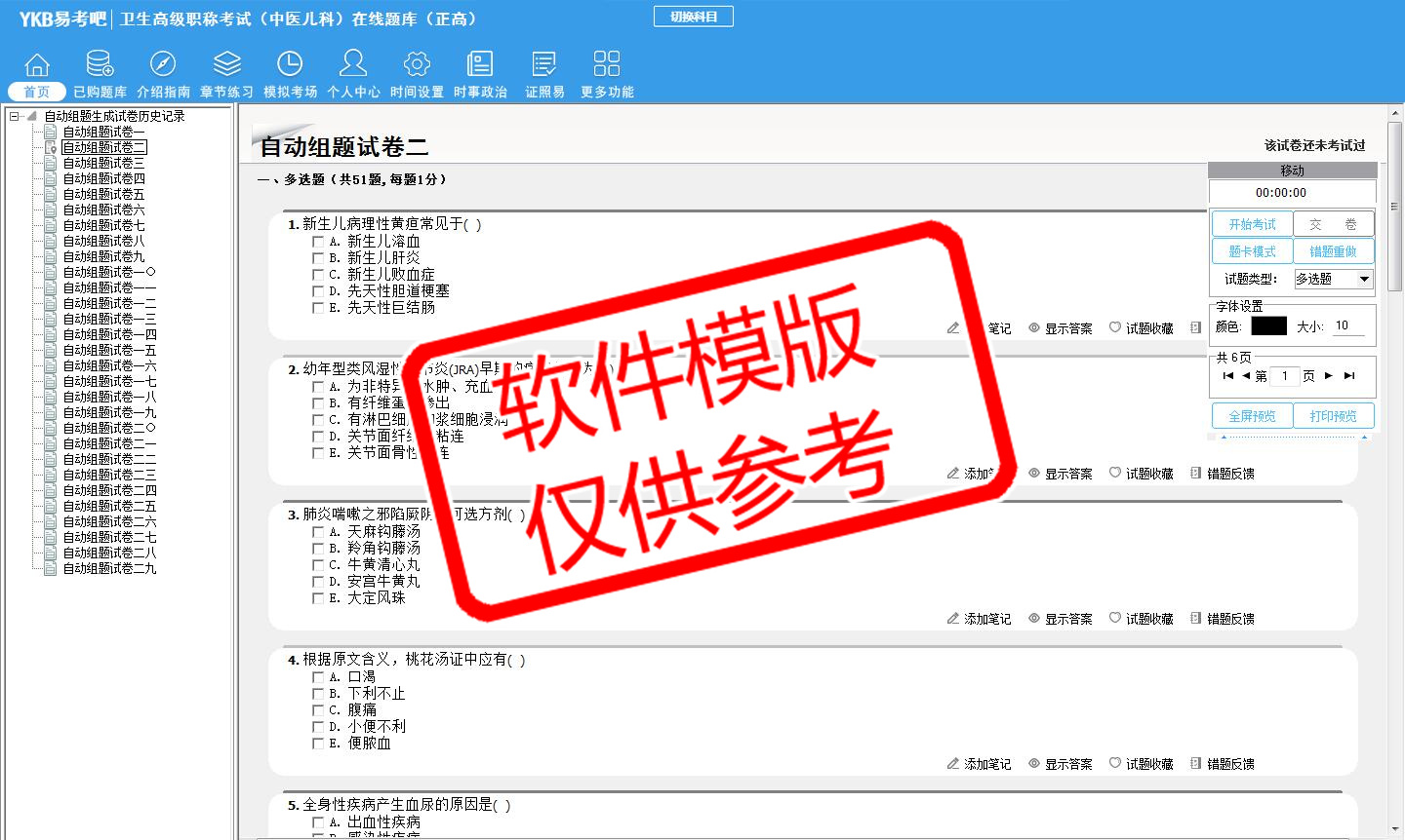 2026年卫生高级职称考试(中医儿科·代码074)易考宝典软件(正高)(手机/网页版)是《易考宝典》考试系列软件之一,是专门为参加“高级职称职业资格考试”的朋友量身定做的自我测试系统,是个人、培训学校进行考试前训练、备考冲刺的提分技巧考试平台,题型丰富,图文并茂,内容全面,题库设计符合考试新大纲,海量试题。软件包括了富有价值的模拟考场,有计时打分等功能,就像亲身体会考试一样。
