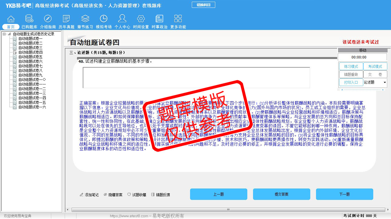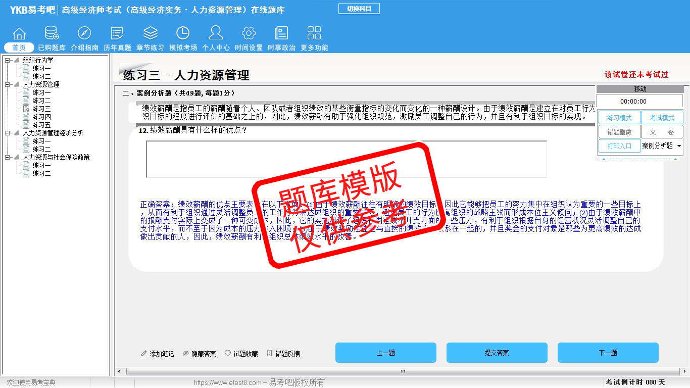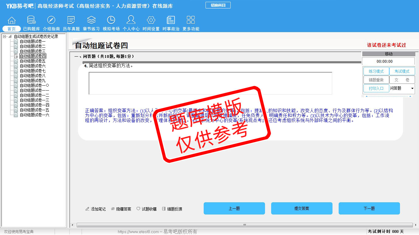 2026年高级经济师考试(高级经济实务·人力资源管理)易考宝典软件(手机/网页版)是《易考宝典》考试系列软件之一,是专门为参加“经济师职业资格考试”的朋友量身定做的自我测试系统,是个人、培训学校进行考试前训练、备考冲刺的提分技巧考试平台,题型丰富,图文并茂,内容全面,题库设计符合考试新大纲,海量试题。软件包括了富有价值的模拟考场,有计时打分等功能,就像亲身体会考试一样。