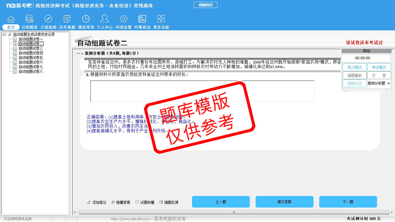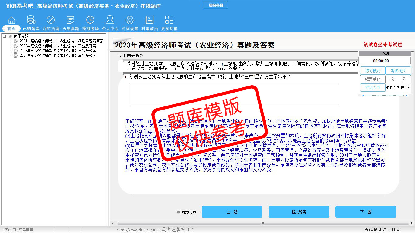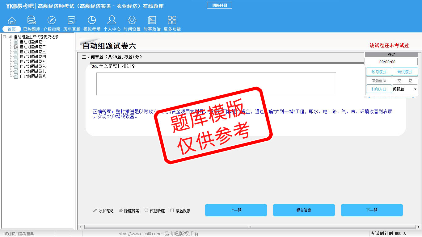 2026年高级经济师考试(高级经济实务·农业经济)易考宝典软件(手机/网页版)是《易考宝典》考试系列软件之一,是专门为参加“经济师职业资格考试”的朋友量身定做的自我测试系统,是个人、培训学校进行考试前训练、备考冲刺的提分技巧考试平台,题型丰富,图文并茂,内容全面,题库设计符合考试新大纲,海量试题。软件包括了富有价值的模拟考场,有计时打分等功能,就像亲身体会考试一样。