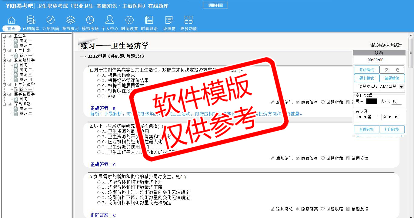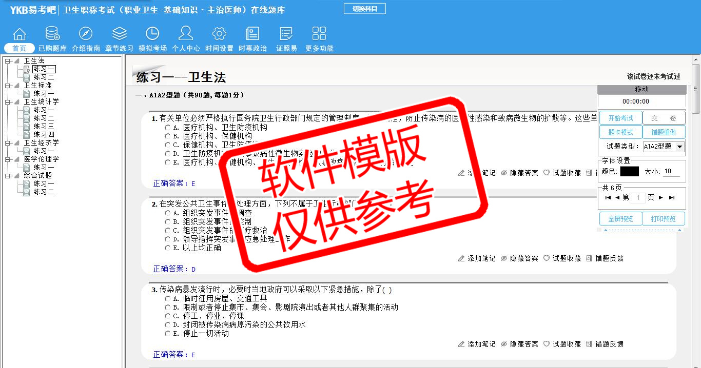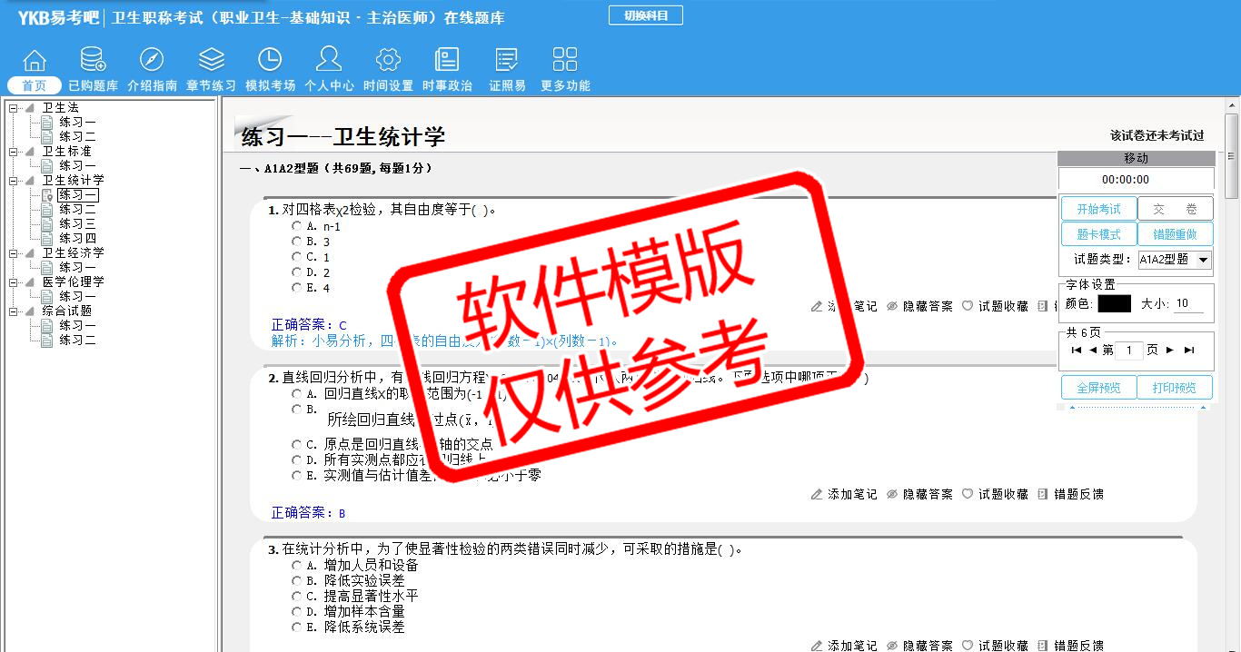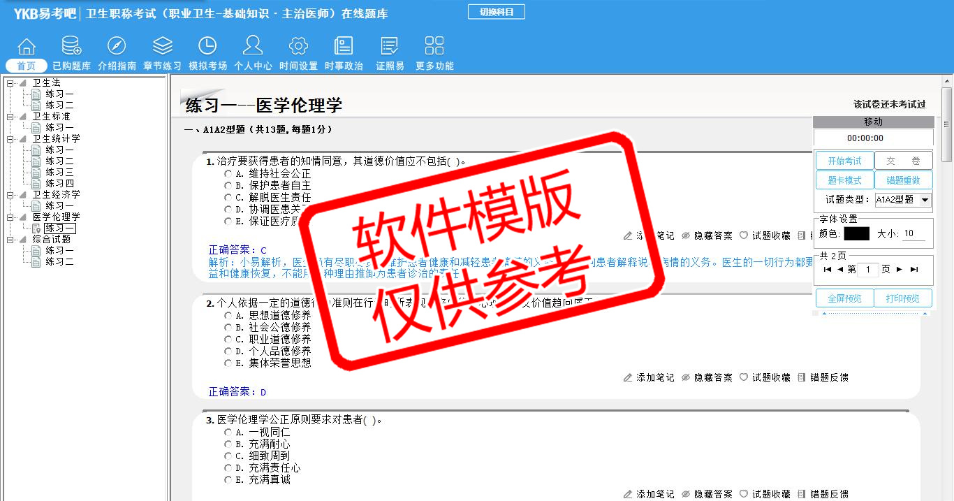 2026年卫生专业技术资格考试(职业卫生·主治医师·代码363)易考宝典软件(手机/网页版)是《易考宝典》考试系列软件之一,是专门为参加“卫生职称职业资格考试”的朋友量身定做的自我测试系统,是个人、培训学校进行考试前训练、备考冲刺的提分技巧考试平台,题型丰富,图文并茂,内容全面,题库设计符合考试新大纲,海量试题。软件包括了富有价值的模拟考场,有计时打分等功能,就像亲身体会考试一样。