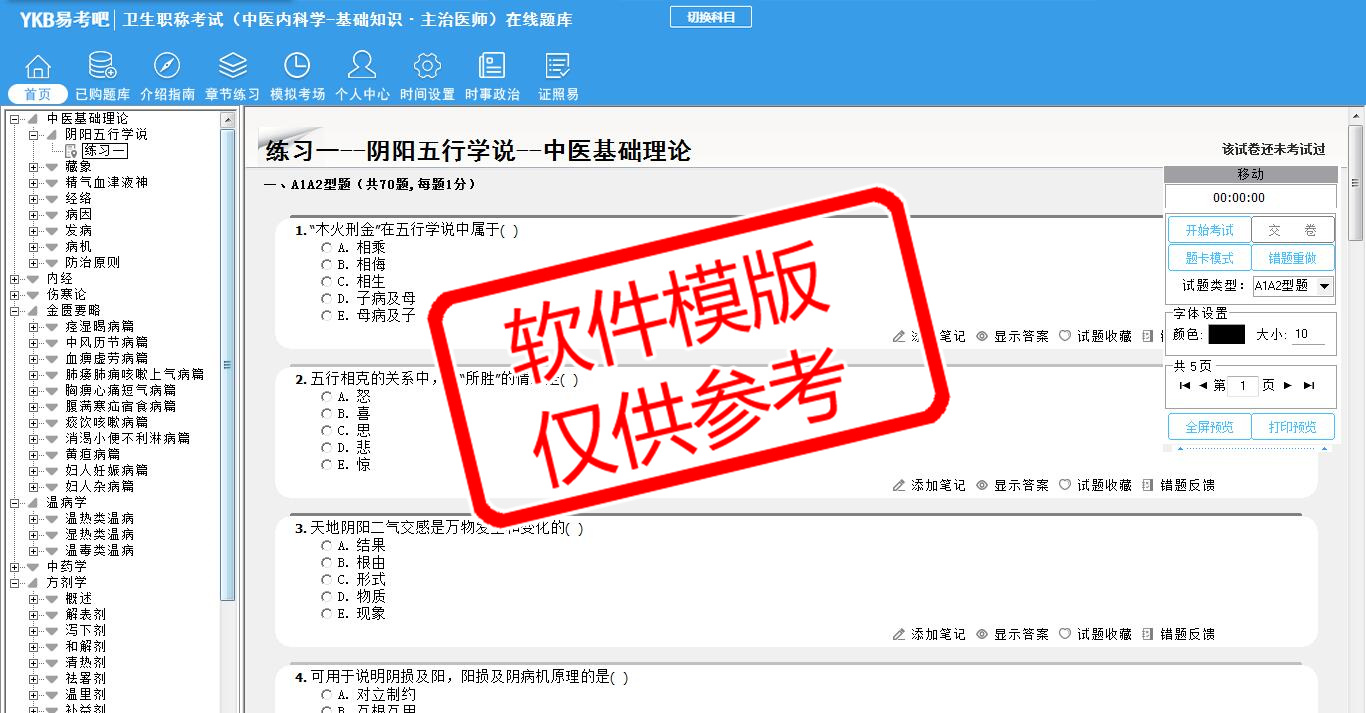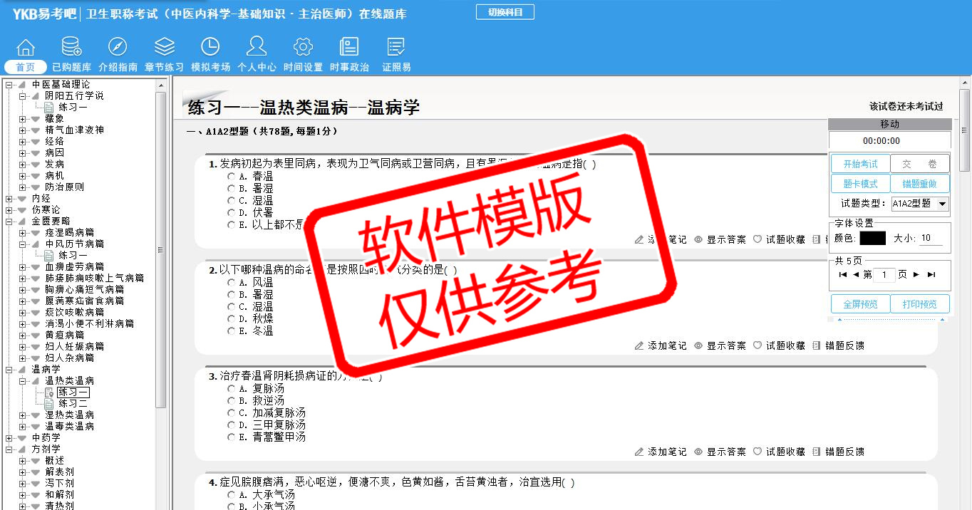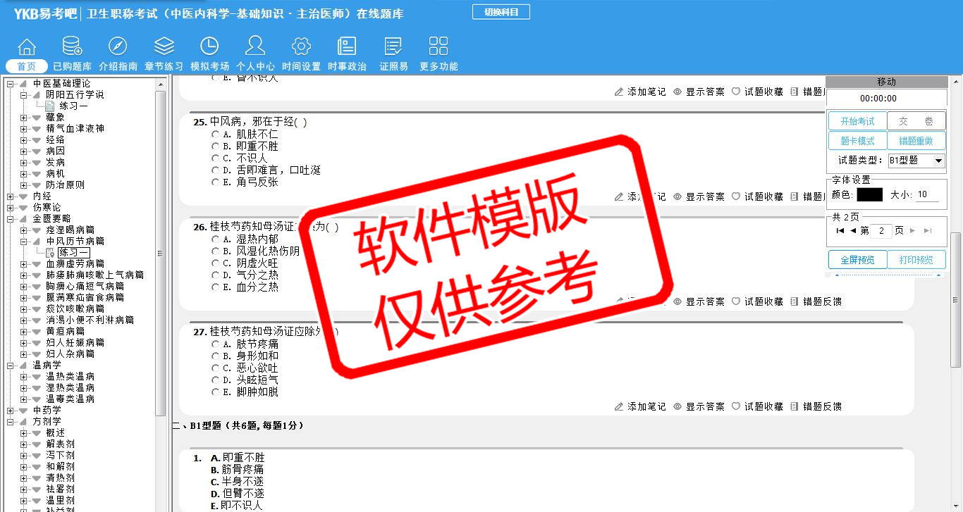 2026年卫生专业技术资格考试(中医内科学·主治医师·代码315)易考宝典软件(手机/网页版)是《易考宝典》考试系列软件之一,是专门为参加“卫生职称职业资格考试”的朋友量身定做的自我测试系统,是个人、培训学校进行考试前训练、备考冲刺的提分技巧考试平台,题型丰富,图文并茂,内容全面,题库设计符合考试新大纲,海量试题。软件包括了富有价值的模拟考场,有计时打分等功能,就像亲身体会考试一样。