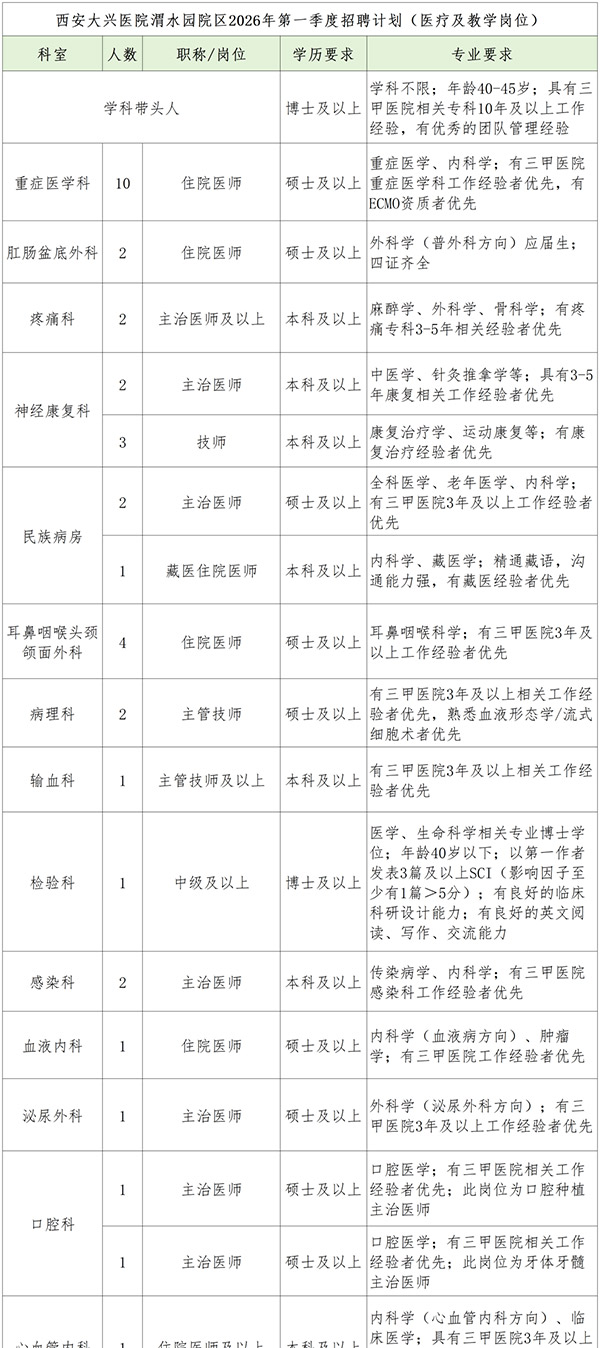2026年陕西省西安市大兴医院渭水园院区招聘岗位表下载(199人)